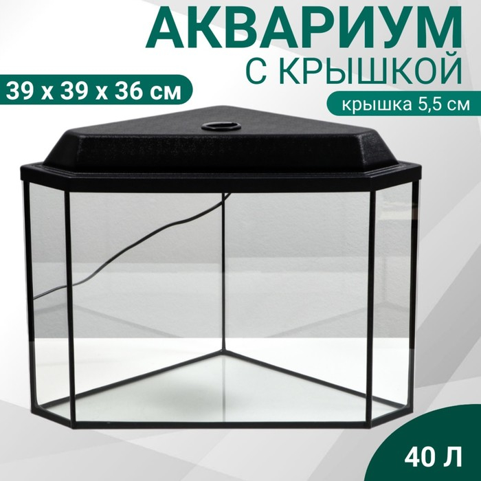 Аквариум "Дельта" угловой с крышкой, 40 литров, 39 х 39 х 36/41,5 см, чёрный
