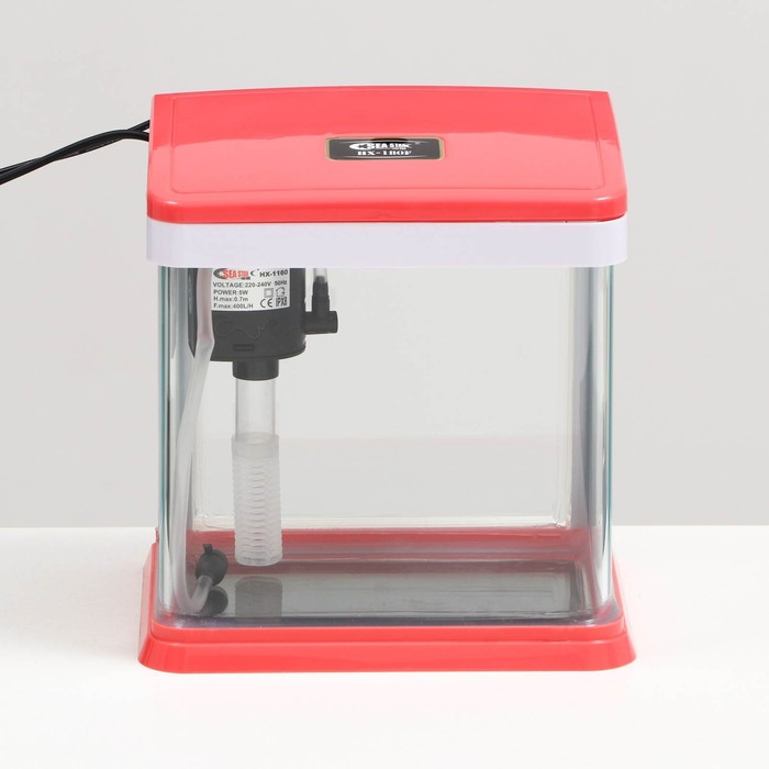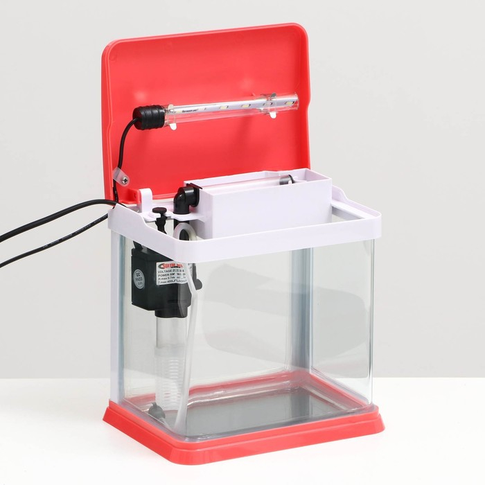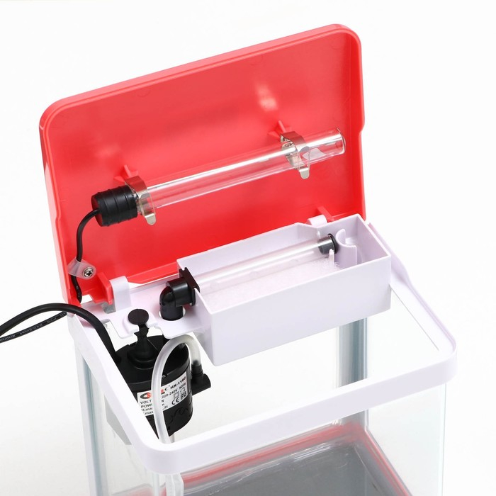 Полезный объем аквариума составляет 3.5 литра. Аквариум полностью готов к работе. Фильтр и светодиодная лампа встроены в крышку аквариума.