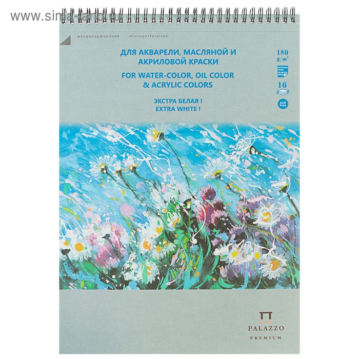 Предназначен для рисования акрилом, акварелью, гуашью, чёрнографитным карандашом, сухой пастелью и восковыми мелками. Альбом на пружине состоит из 16 листов рисовальной бумаги, экстра белая – яркая, имеет зернистую поверхность, плотностью 180г/м2, на жесткой подложке. Акварельная краска, положенная на шероховатую зернистую поверхность, на освещенной стороне выпуклости смотрится светлее и ярче, в углублении – темнее и меняет оттенок. Чередование светотеней на зернистой бумаге создает игру цвета. Бумага подходит для размыва и большого ровного нанесения краски, а также выдерживает многочисленные подправки и стирания ластиком.