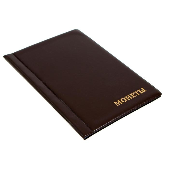 Альбом для монет 125 х 185 мм Calligrata, на 120 монет, ячейка 35 х 35 мм, 8 листов, обложка ПВХ, коричневый