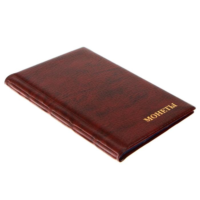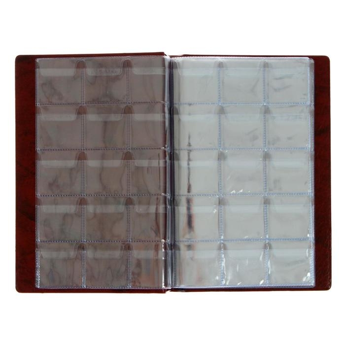 Альбом для монет 125 х 185 мм Calligrata, на 150 монет, ячейка 35 х 35 мм, 10 листов, обложка искусственная кожа, коричневый