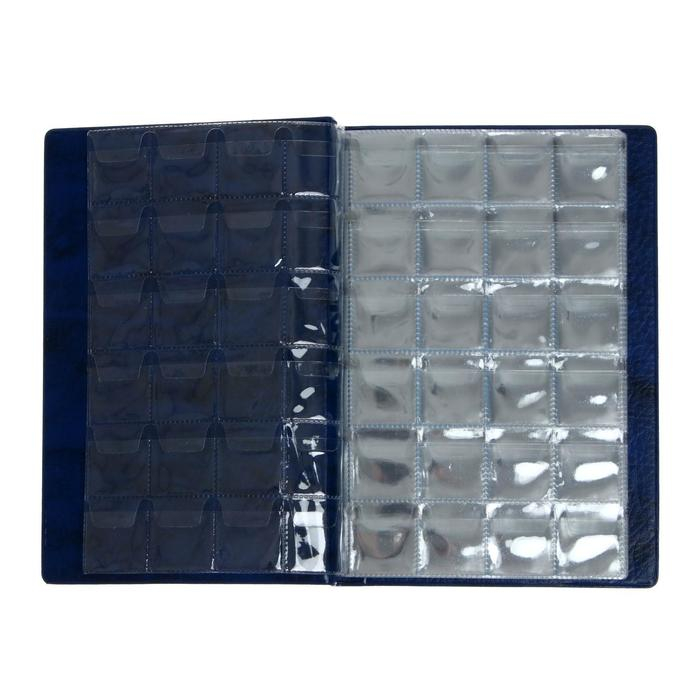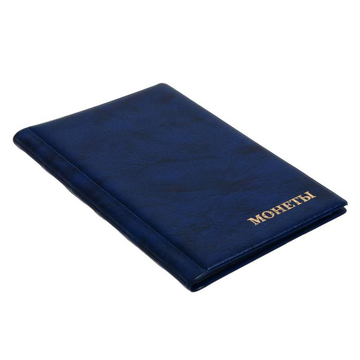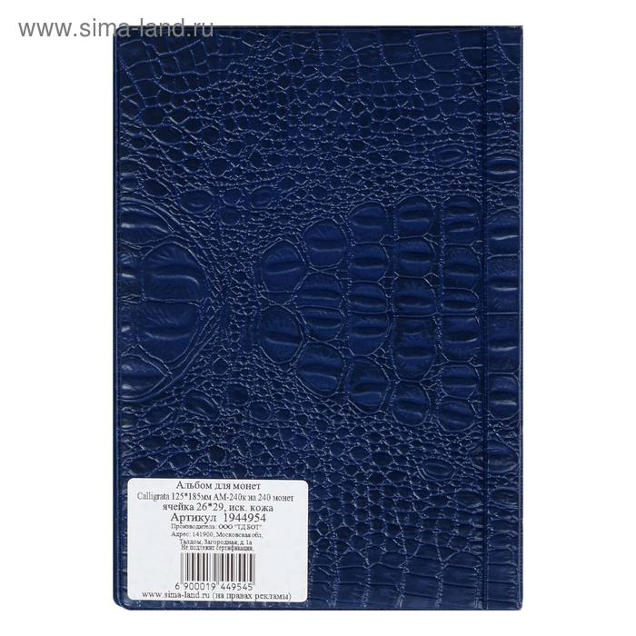 Альбом для монет 125 х 185 мм Calligrata, на 240 монет, ячейка 26 х 29 мм, 10 листов, обложка искусственная кожа, синий