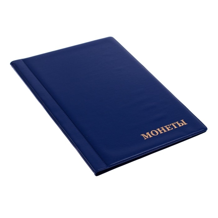 Альбом для монет 125 х 185 мм Calligrata, на 90 монет, ячейка 35 х 35 мм, 6 листов, обложка ПВХ, синий