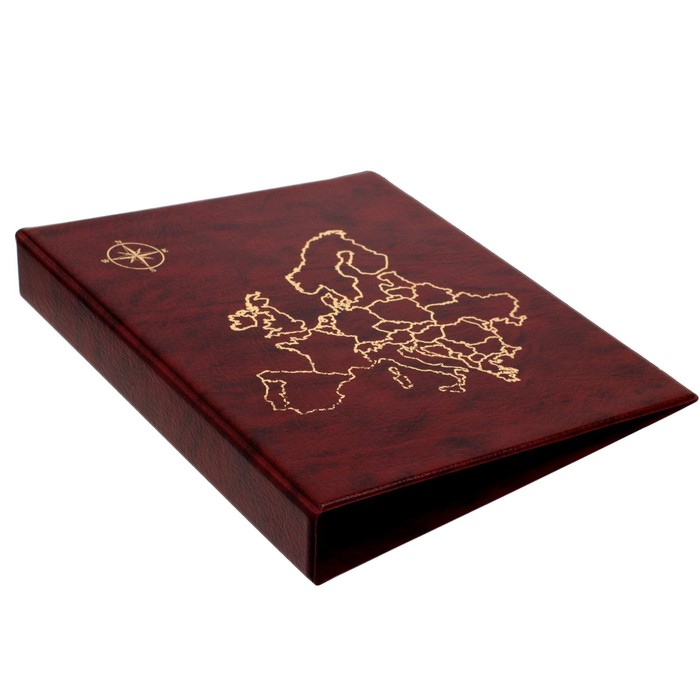 Альбом для монет на кольцах, формат Оптима 230 х 265 мм Calligrata "Карта", входит до 20 листов, обложка искусственная кожа, коричневый