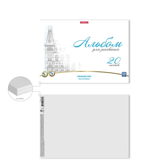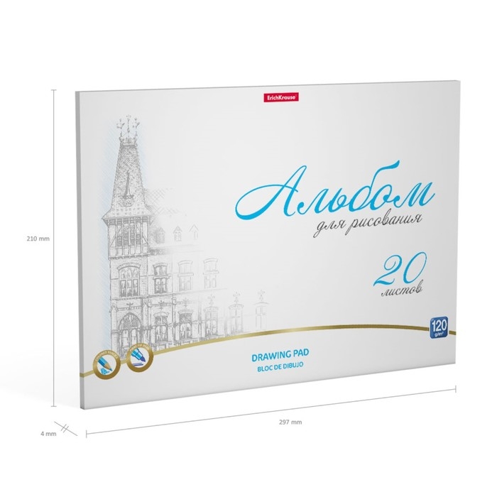Альбом для рисования А4, 20 листов на клею ErichKrause Towers, обложка мелованный картон, жёсткая подложка, блок 120 г/м2