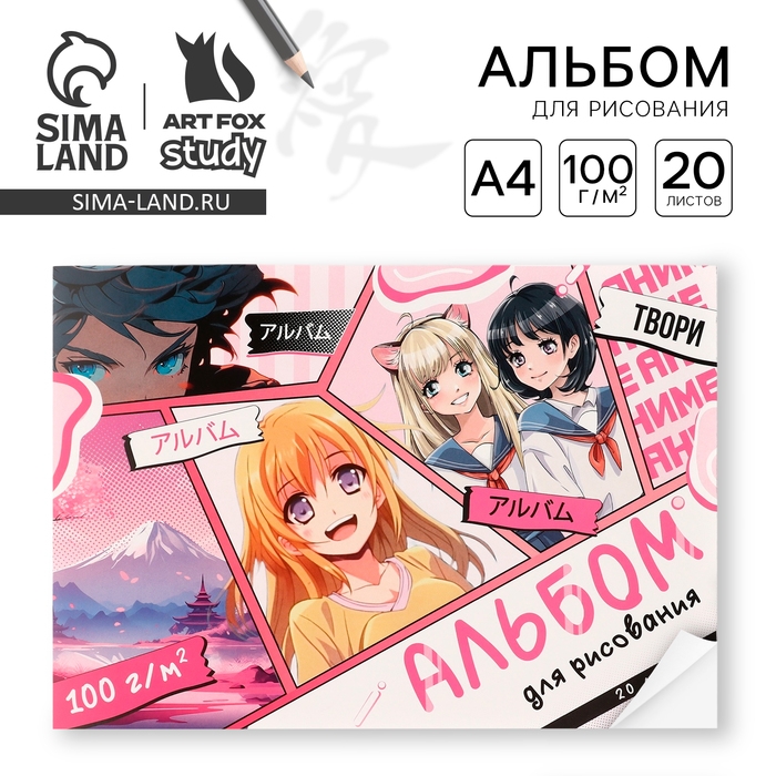 Альбом для рисования А4 20 листов на скрепке «1 сентября:1 сентября:Аниме школьницы»