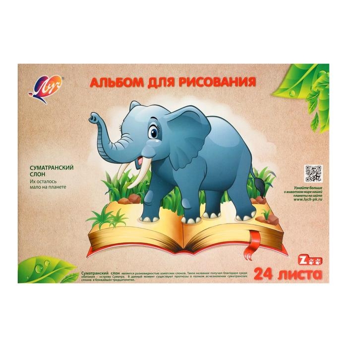 Альбом для рисования А4, 24 листа на скрепке "Луч" Слон, блок 100 г/м2