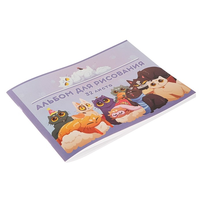 Альбом для рисования А4, 24 листа, на гребне, "Милые котята" обложка мелованный картон, блок 100 г/м², перфорация на отрыв, МИКС