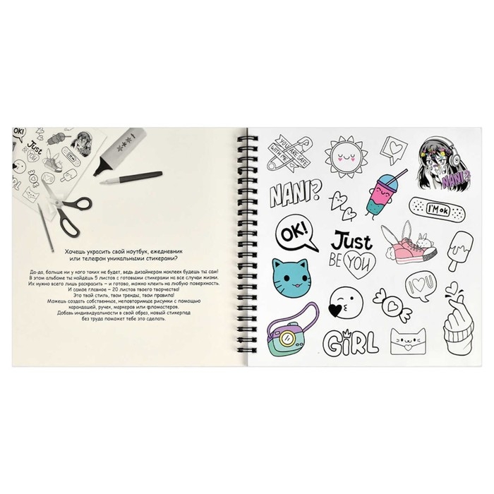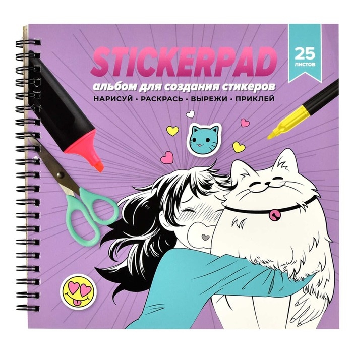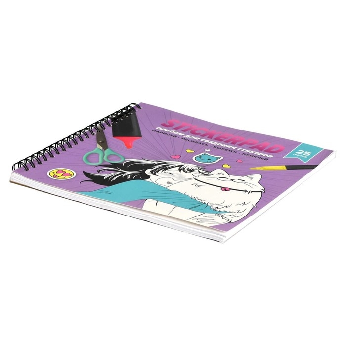 Альбом для создания стикеров 195 х 195, 25 листов на гребне, "МАНГА", обложка мелованный картон, 5 листов самоклеящихся + 20 листов белой бумаги, блок 80г/м2