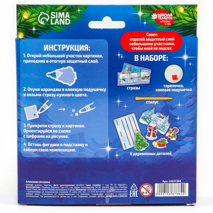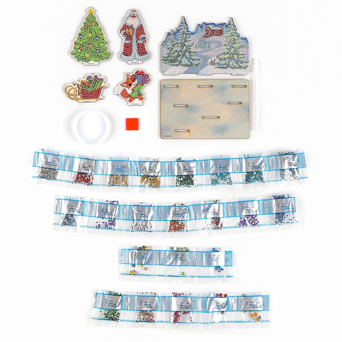 Алмазная мозаика на новый год для детей на фигурке, композиция «Ногодняя сказка», 10 х 10 см, новогодний набор для творчества