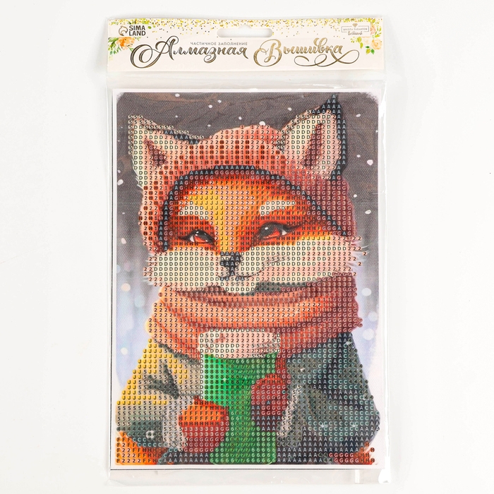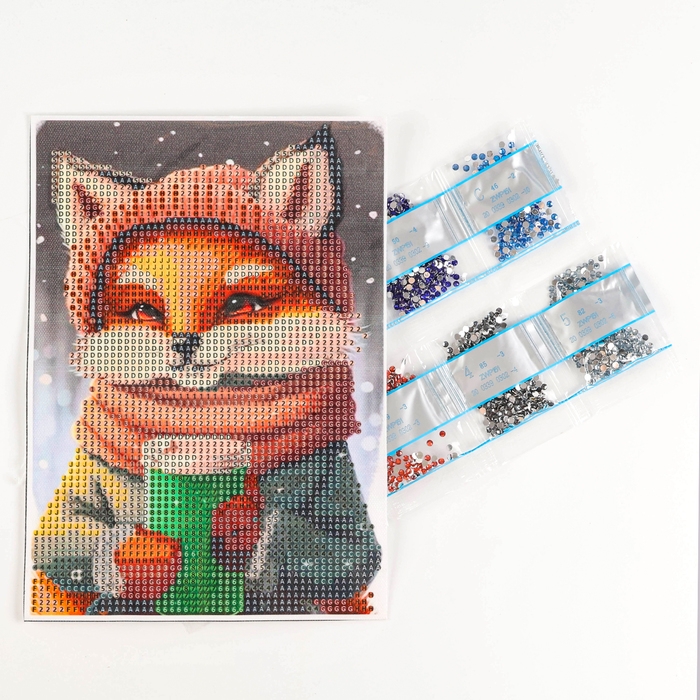 Алмазная мозаика на новый год с частичным заполнением на холсте «Лисичка», 15 х 21 см, новогодний набор для творчества