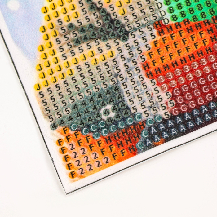 Разложите стразы с помощью карандаша по указанной схеме, заполнив полотно. Тканевая основа с точечным клеевым покрытием будет надёжно удерживать стразы. На картине уже обозначены необходимые оттенки, а цветовая таблица расположена рядом с рабочей областью холста.