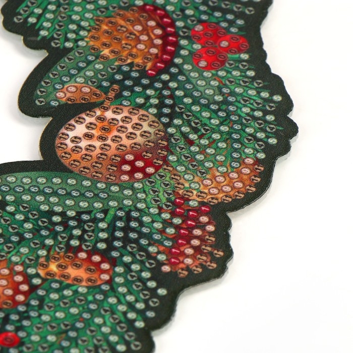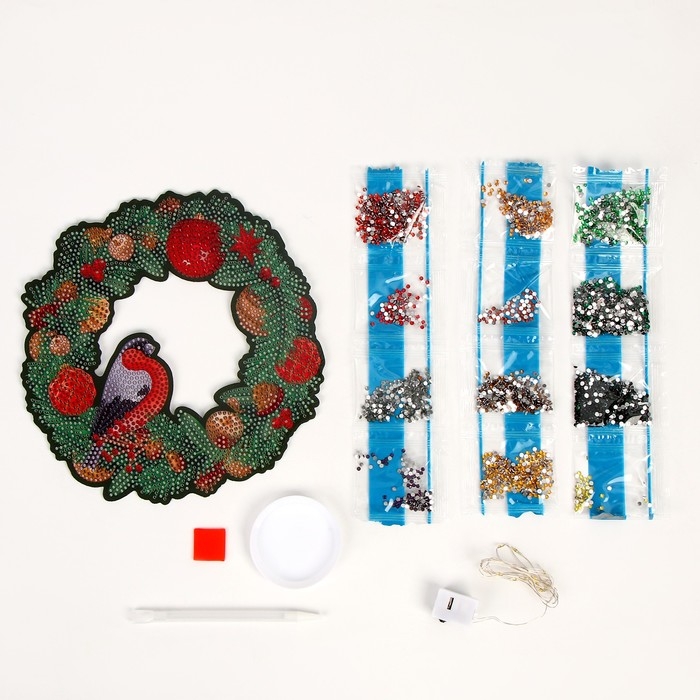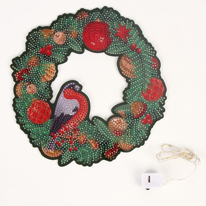 Алмазная мозаика на новый год с полным заполнением на фигурке. Новогодний венок «Снегирь», 20 х 20 см, новогодний набор для творчества