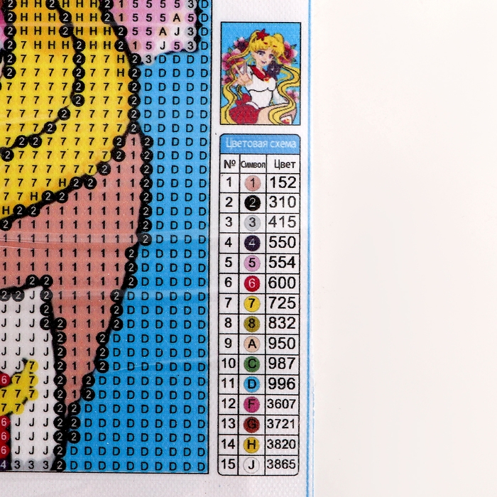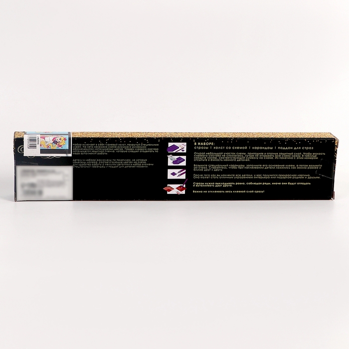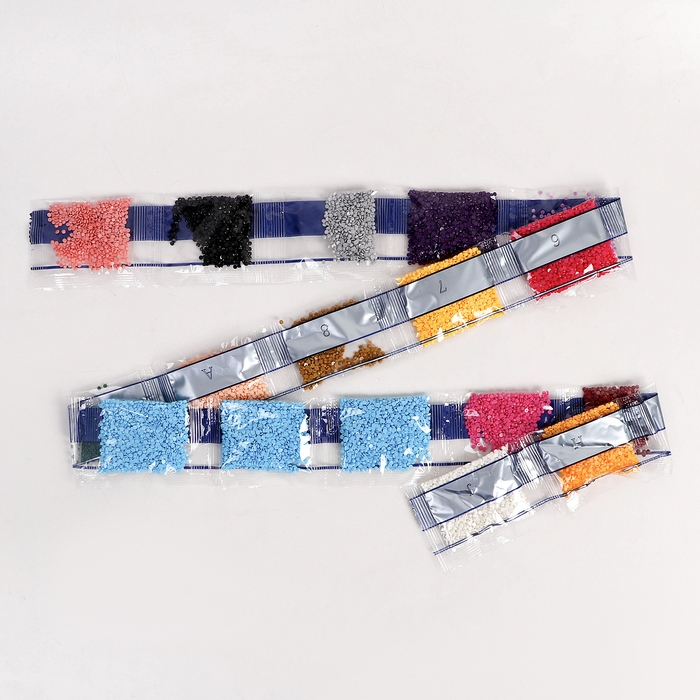Вам предстоит разложить кристаллики карандашом по пронумерованной схеме. Холст с клеевым покрытием будет надёжно удерживать стразы.