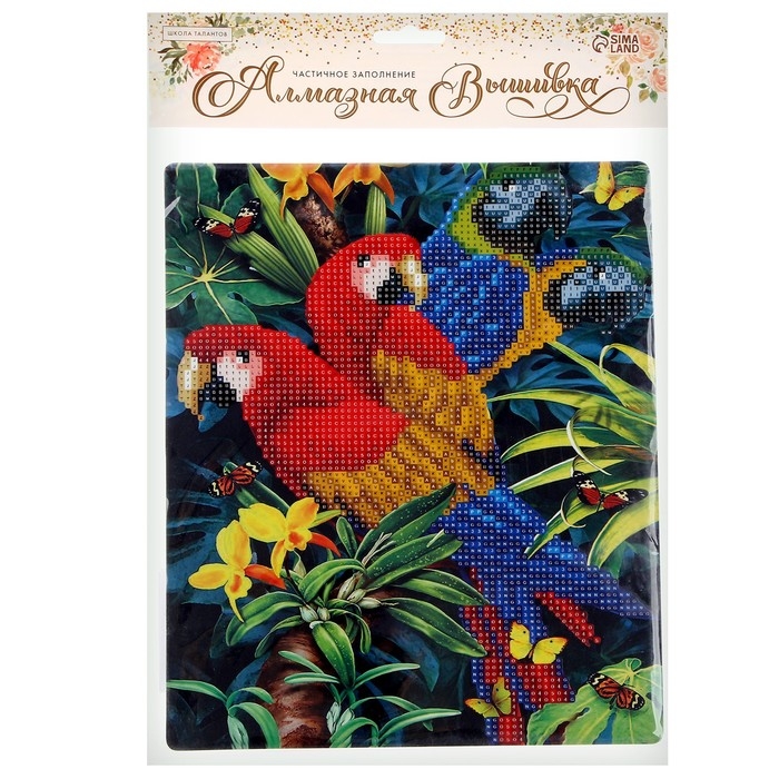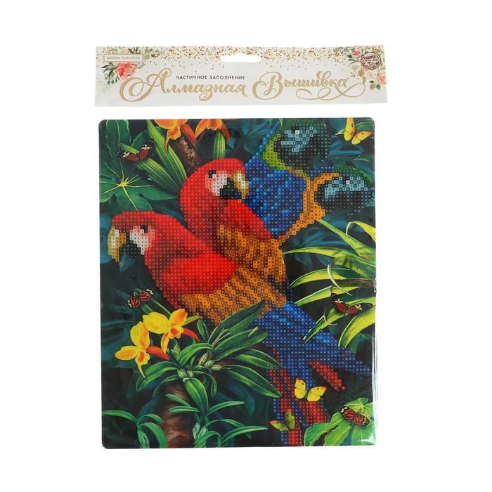 Алмазная вышивка с частичным заполнением «Попугаи» с подставкой, размер картины: 21 × 25 см