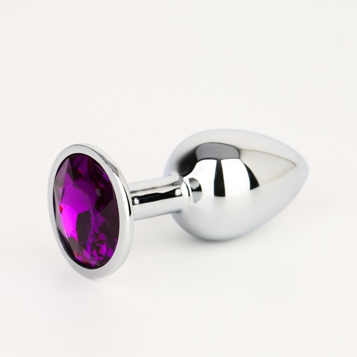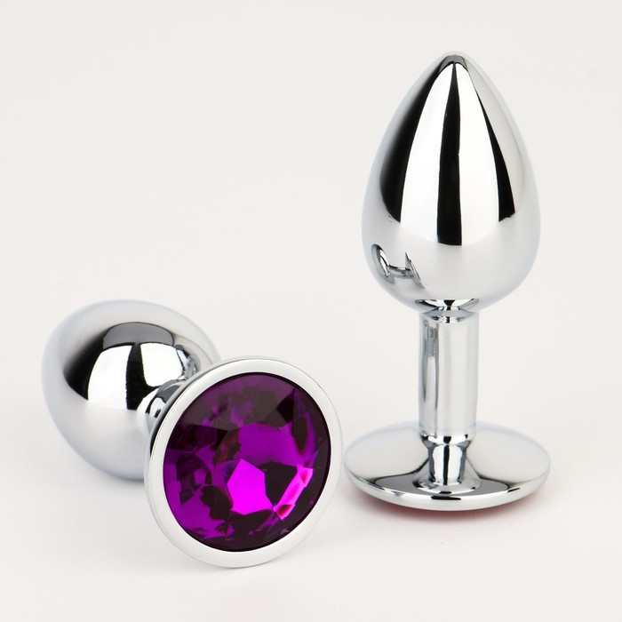 Анальная пробка Оки-Чпоки, серебряная, кристалл фиолетовый, D = 28 мм