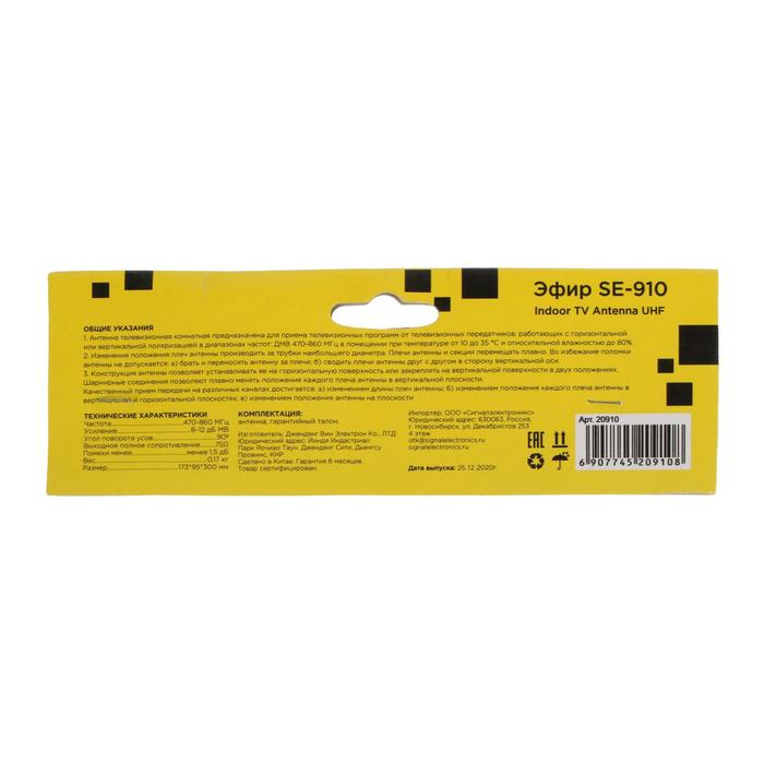 Антенна "Эфир" SE-910, комнатная, пассивная, 12 дБи, DVB-T, DVB-T2, цифровая