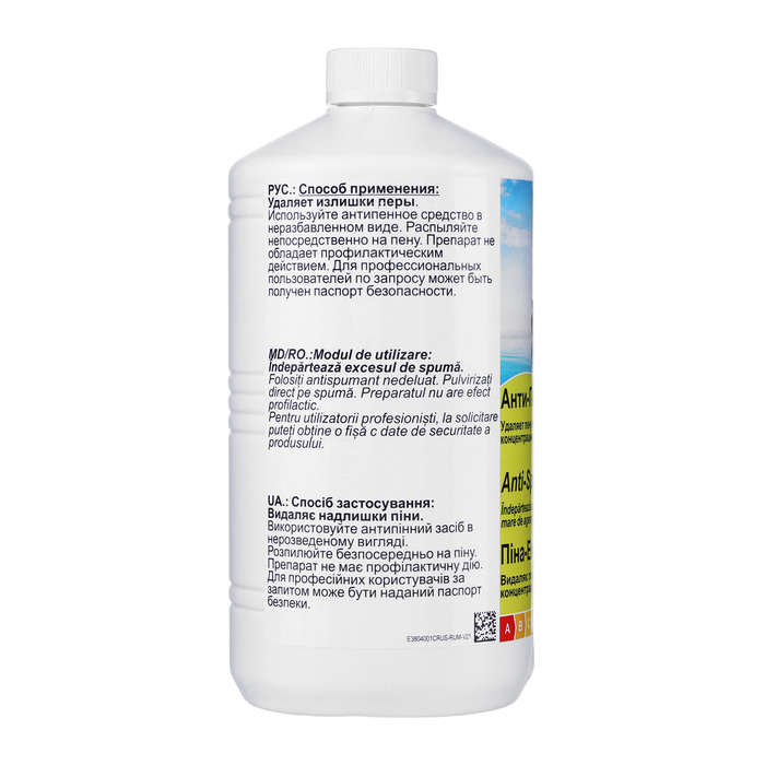 Чрезмерное содержание моющих средств или альгицидов в воде бассейна приводит к образованию пены. При помощи препарата «Анти-Пена» можно предотвратить появление или удалить уже образовавшуюся пену. Дозирование осуществляется путём непосредственного вливания в бассейн или посредством скиммера.