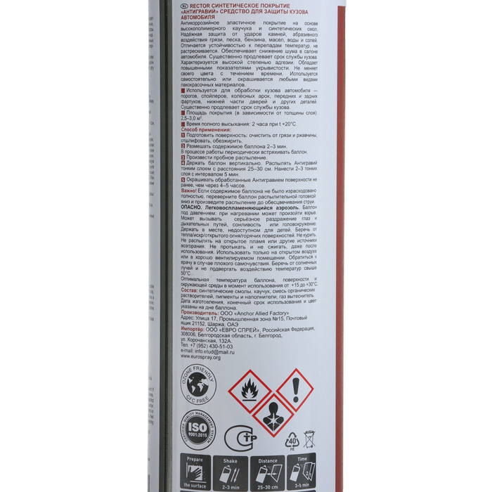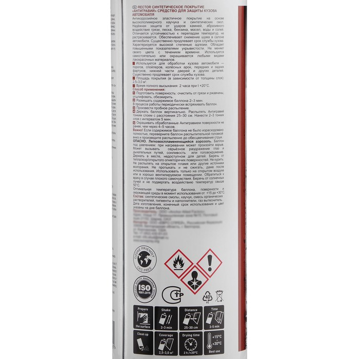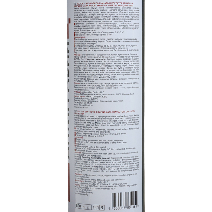 Эластичное антикоррозийное покрытие на основе высокополимерного каучука и синтетических смол. Для обработки кузова автомобиля - порогов, спойлеров, колёсных арок, передних и задних фартуков, нижней части дверей и других деталей.