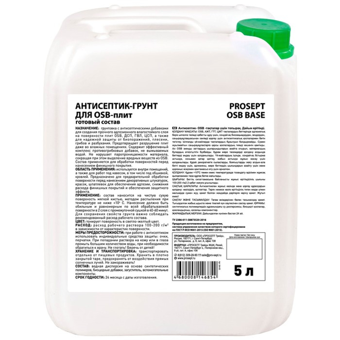 Антисептик-грунт для OSB-плит PROSEPT OSB BASE, 5 л