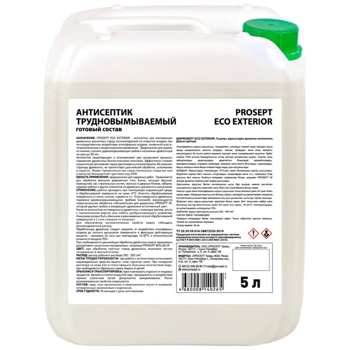 Антисептик трудновымываемый для наружных работ PROSEPT ECO EXTERIOR, 5 л