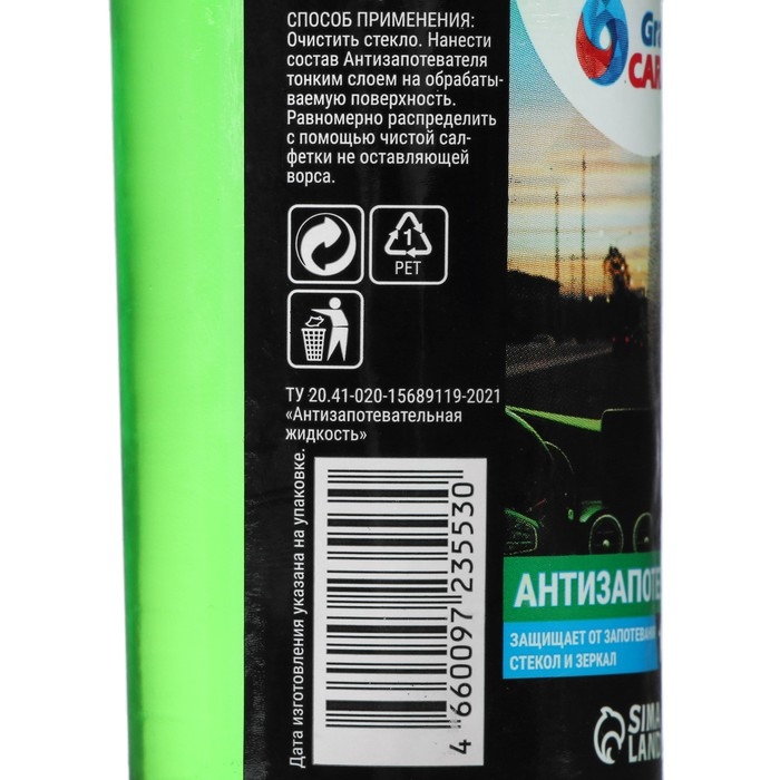 Антизапотеватель Grand Caratt эффективно предотвращает запотевание стекол и зеркал автомобиля, улучшает видимость, способствуя комфортному и безопасному движению в условиях высокой влажности. Не оставляет разводов и радужных ореолов. Специально разработанный состав препятствует образованию конденсата воды в виде микро-капелек, которые создают эффект мутного стекла. В зимнее время года препятствует образованию инея на поверхности. Также может применяться для предотвращения запотевания всех видов стеклянных и зеркальных поверхностей в помещениях с повышенной влажностью (оконных стекол, витрин, зимних садов, теплиц и пр.).