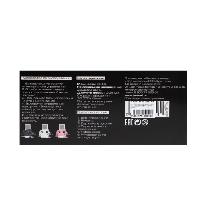 Аппарат для маникюра и педикюра JessNail JD4500, 6 фрез 30000 об/мин, 35 Вт, чёрный