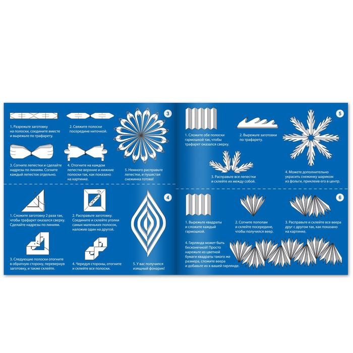 Набор аппликаций «Объёмные снежинки» включает в себя 3 книги со схемами снежинок, а именно: