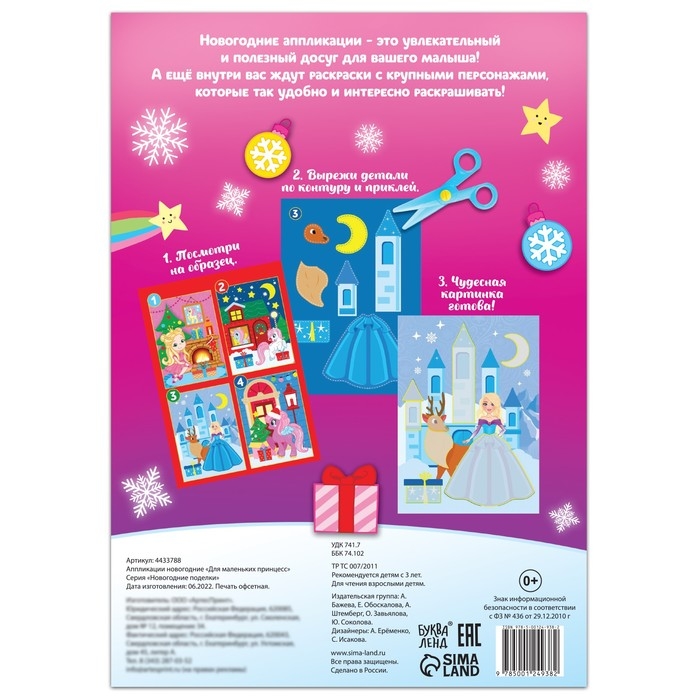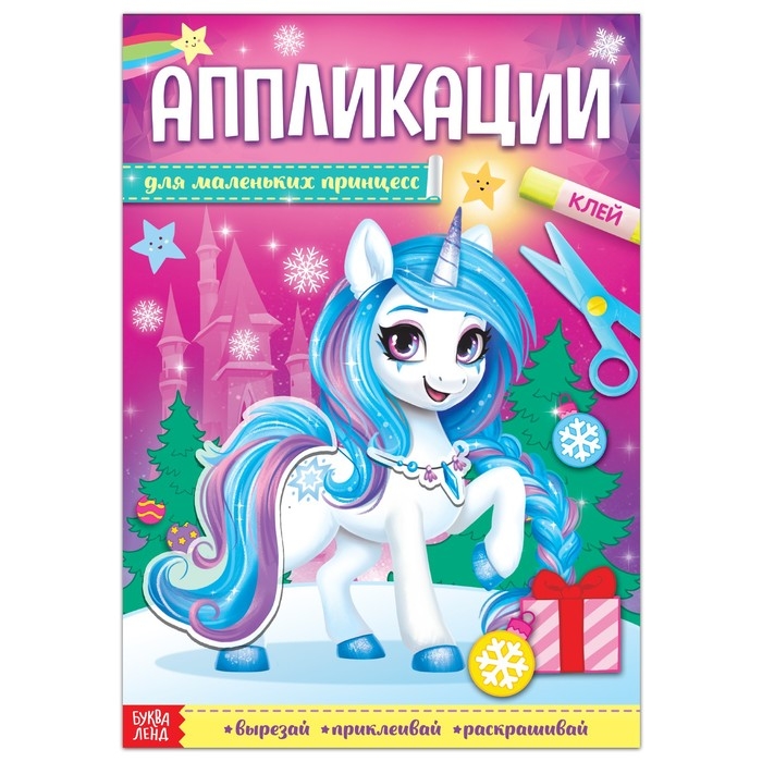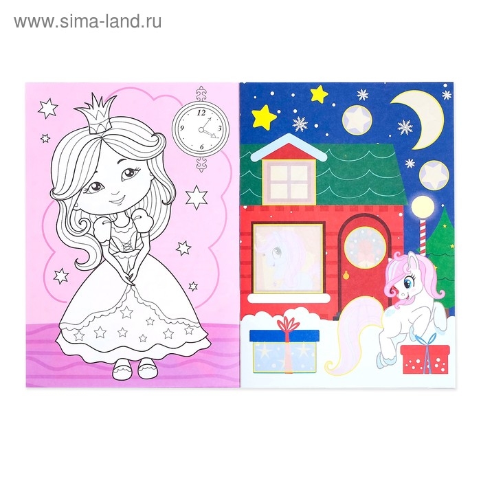 Аппликации с раскрасками новогодние «Для маленьких принцесс», 20 стр., формат А4
