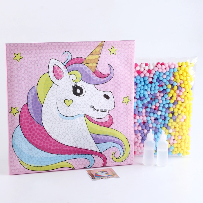 Аппликация помпошками «Прекрасный единорог», размер — 30 × 30 см, клей 30 мл