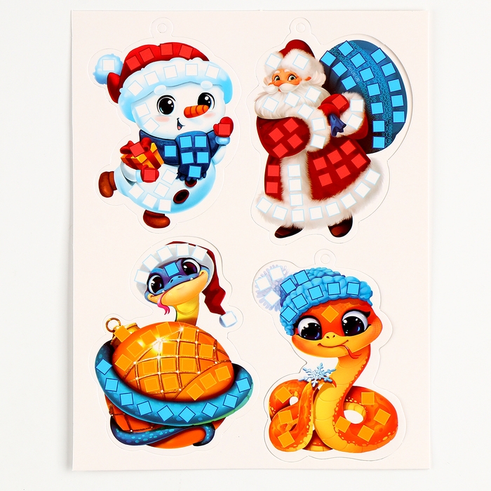 Аппликация стикерами на новый год. Елочные игрушки «Змея. Счасливого Нового Года», новогодний набор для творчества, символ года 2025