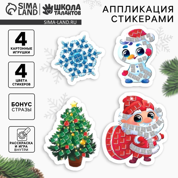 Аппликация стикерами на новый год «В гостях у Деда Мороза», новогодний набор для творчества