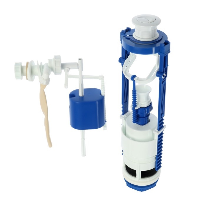 Арматура для смывных бачков "РБМ" АС-11.1, с боковым плоским донным клапаном, кнопка белая