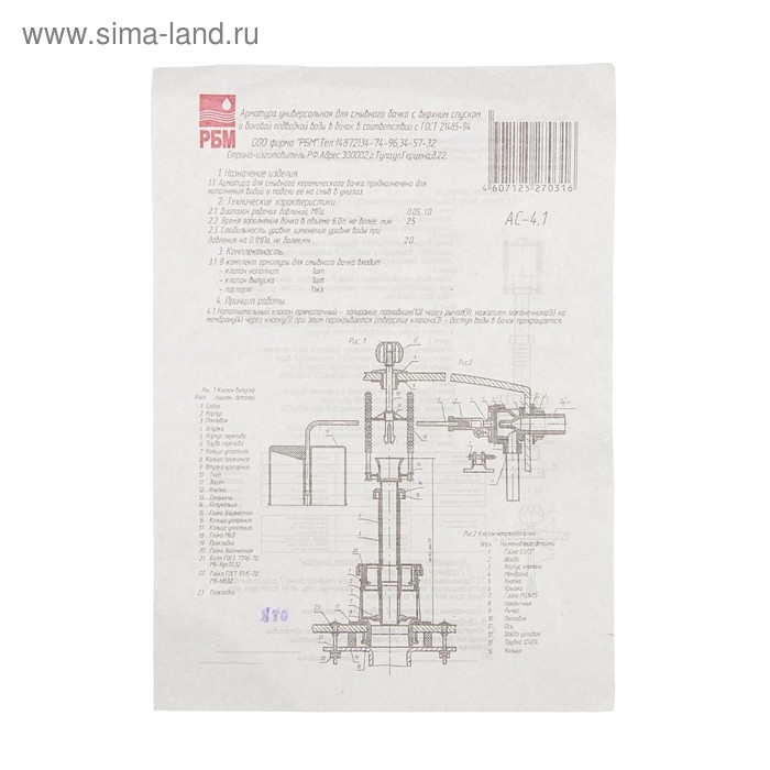 Арматура для смывных бачков "РБМ" АС-4.1, с боковым мембранным клапаном