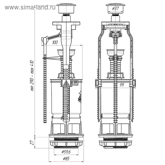 Арматура водосливная для бачка «ЭКОНОМ» WC7030, кнопка белая