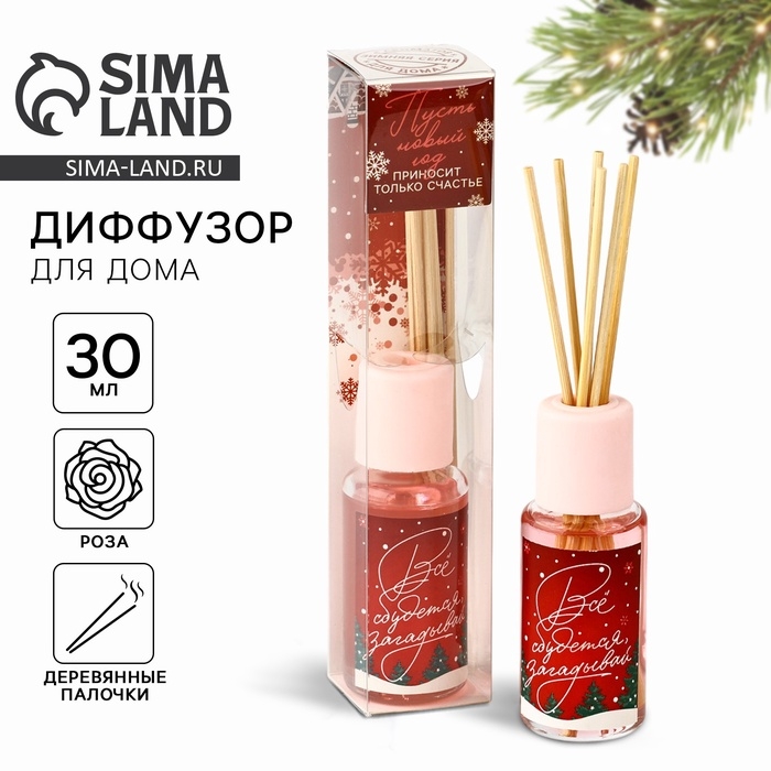 Аромадиффузор ароматический палочки «Новогодняя коллекция: Счастье в новом году», аромат роза, 30 мл