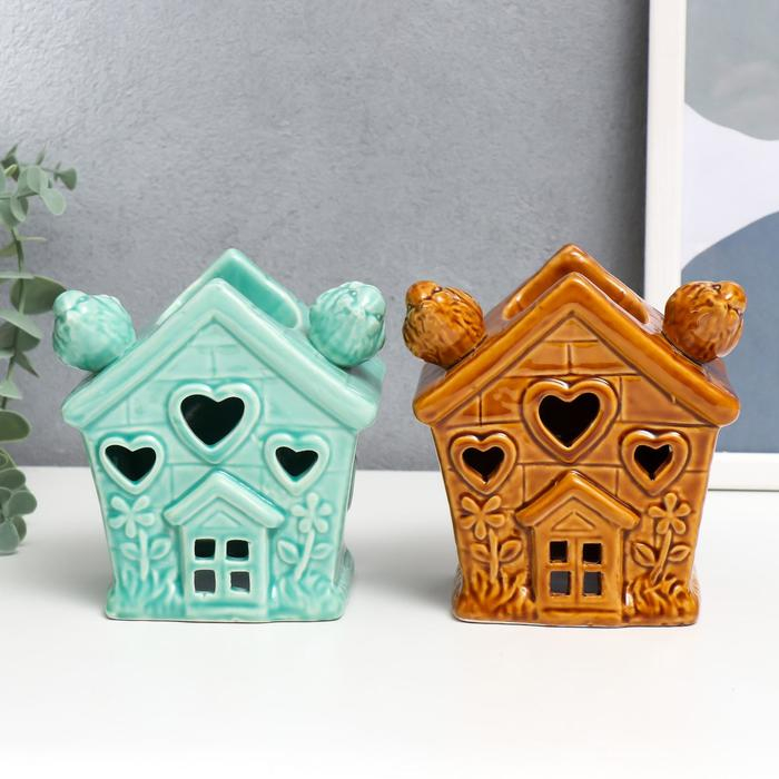 Аромалампа керамика "Домик с птичками" МИКС 11,5х11х7,5 см