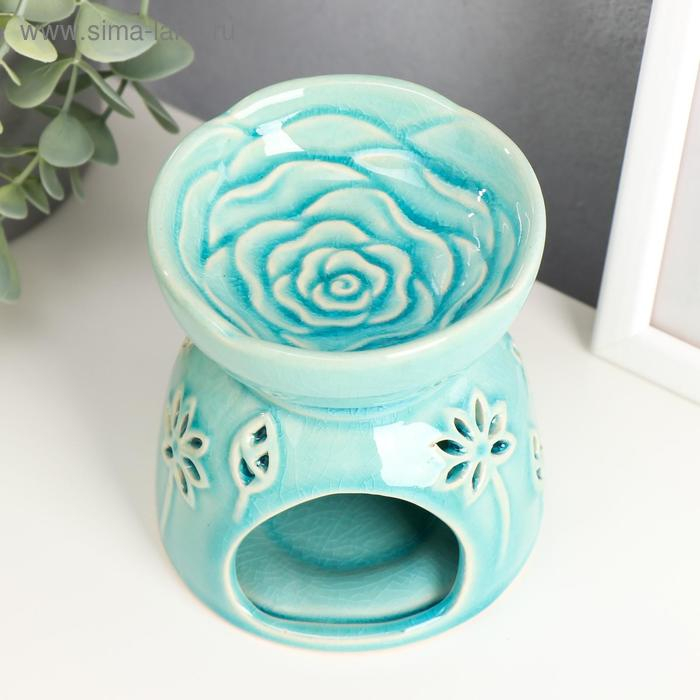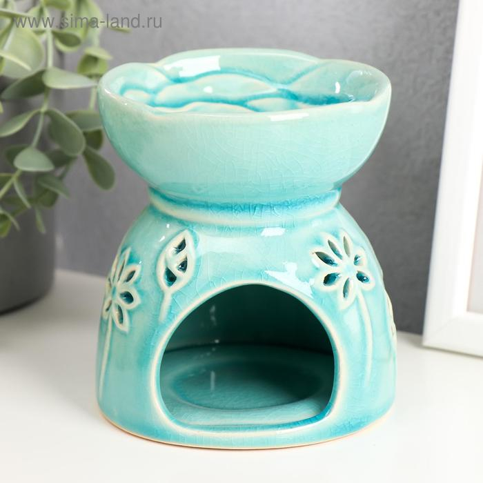 Аромалампа керамика "Лотосы" голубая 11,2х10х10 см