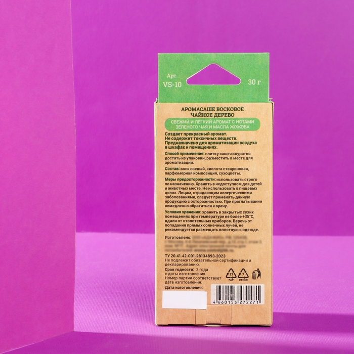 Аромасаше восковое с ароматом чайного дерева – это натуральный ароматизатор, предназначенный для использования в автомобиле. Оно имеет компактный размер и удобную форму, что позволяет разместить его под сиденьем, обеспечивая приятный аромат и создавая уютную атмосферу в салоне автомобиля.