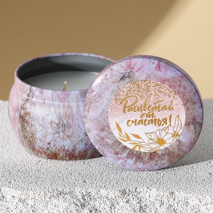Зажгите уютное настроение с ароматической свечой в металлической банке «Расцветай от счастья»!