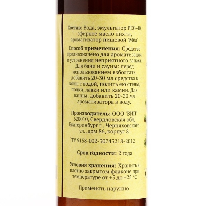 - Для бани и сауны: перед использованием взболтать, добавить 20-30 мл средства в ковш с водой и полить ею стены, полки, лавки или камни.