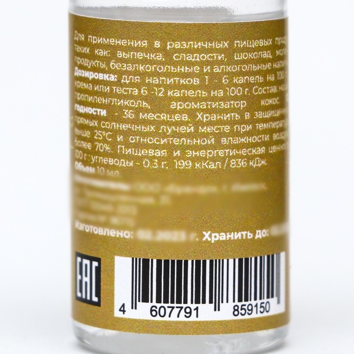 Дозировка: для напитков 1-6 капель на 100 грамм, для крема или теста 6-12 капель на 100 грамм.