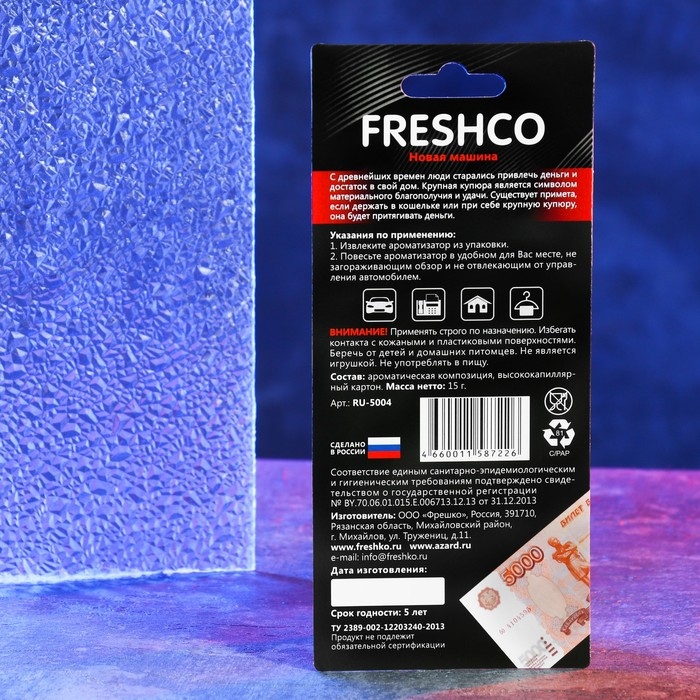 Ароматизатор подвесной картонный "5000 рублей", новая машина