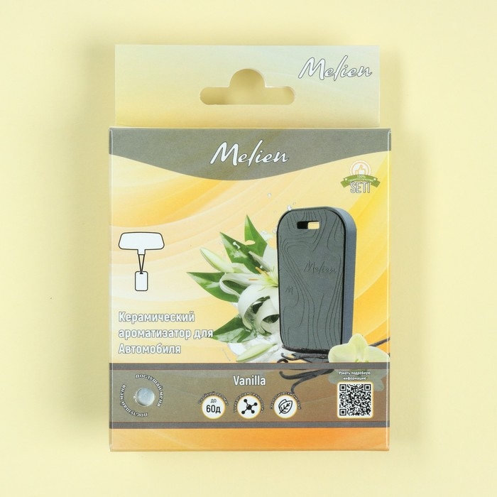 Ароматизатор подвесной Melien Ваниль — это стильный аксессуар для вашего автомобиля, который не только украсит салон, но и наполнит его приятным ароматом. Изготовленный из высококачественных материалов, он станет отличным дополнением к интерьеру и обеспечит свежесть воздуха на долгое время.