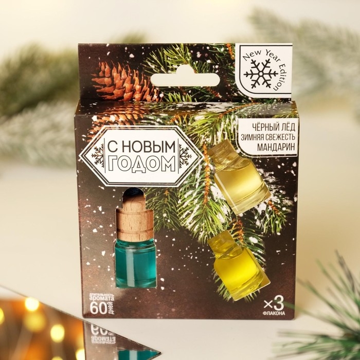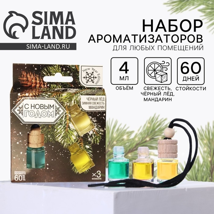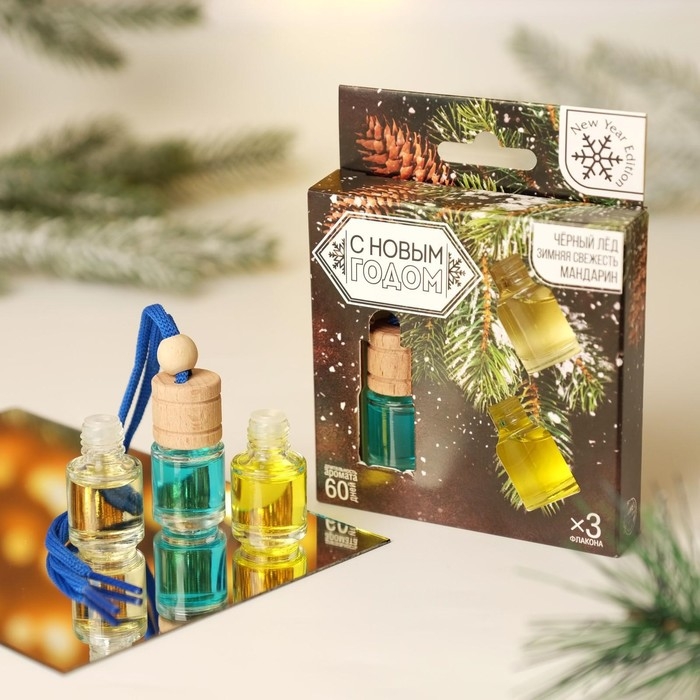 Ароматизаторы в машину «Крепость и выдержка», черный лёд, зимняя свежесть, мандарин (набор 3 шт)