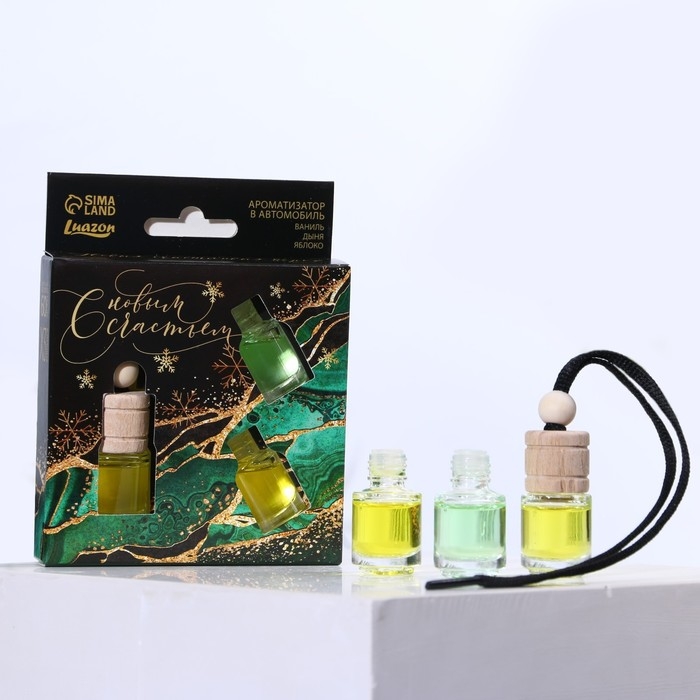 Ароматизаторы в машину «С новым счастьем», ваниль, дыня, яблоко (набор 3 шт)