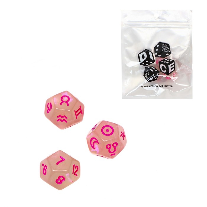 Астрологические кубики для гадания "Время игры", 3 шт, розовые