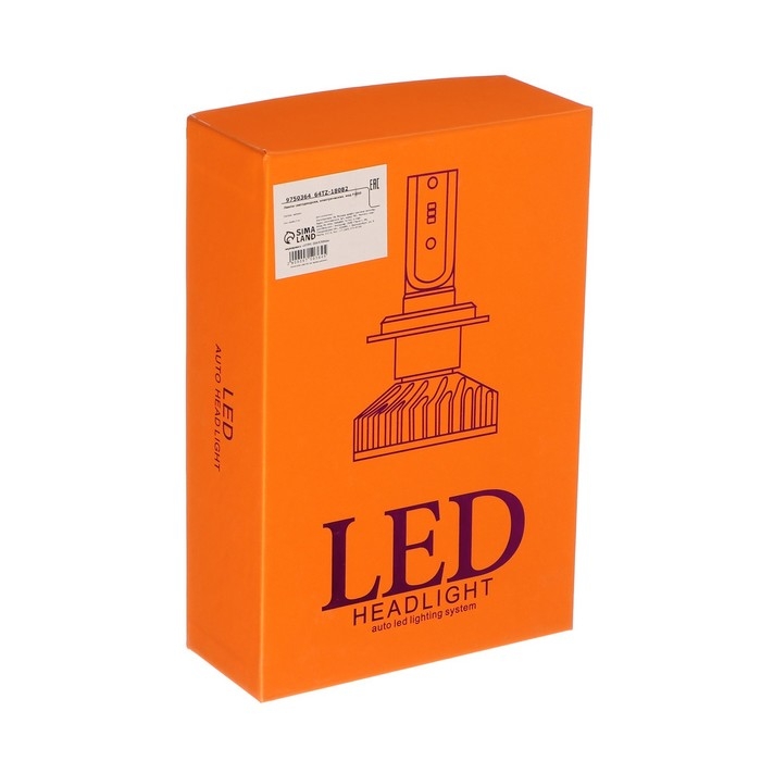 Автолампа светодиодная Н7, 36 Вт, 3800 Лм, набор 2 шт