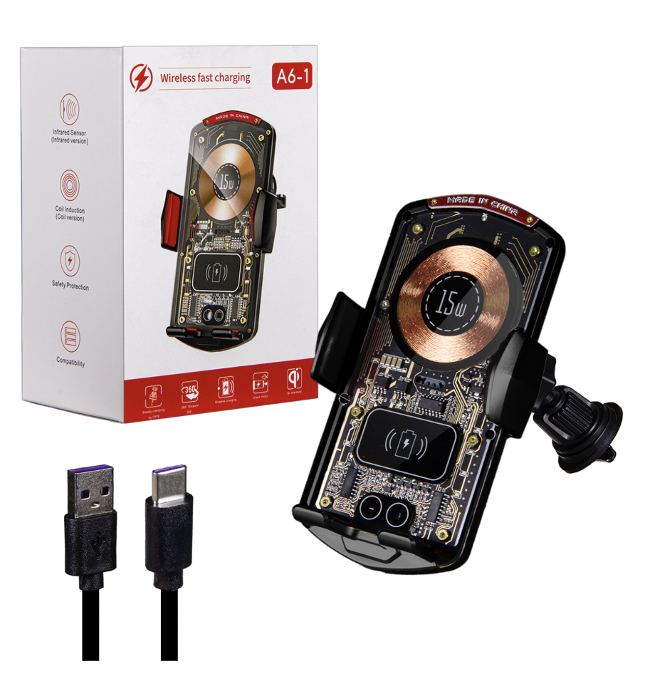 Автомобильное беспроводное зарядное устройство A6-1 черный