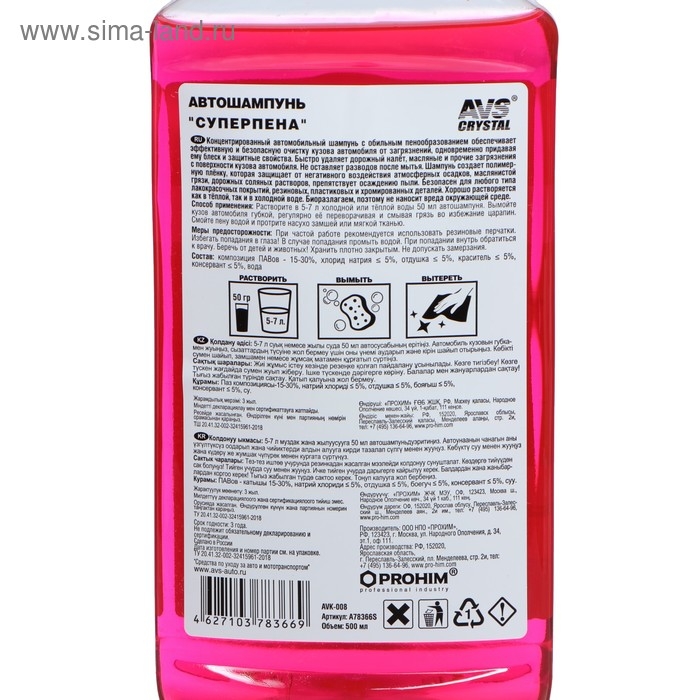 Автошампунь AVS Суперпена, 500 мл, контактный